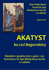 W niedzielę 3 grudnia 2023 r godz. 18.15 nasz Chór Stella Maris wykonał Akatyst ku czci Bogurodzicy w Archikatedrze Lubelskiej